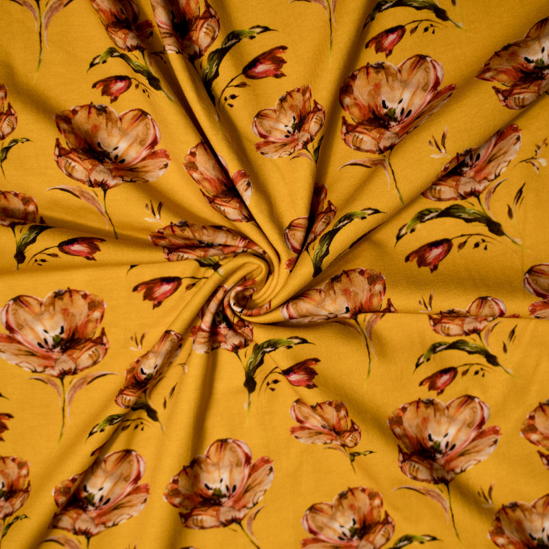Jersey Blumenoutline in aqua auf dunkelgrau