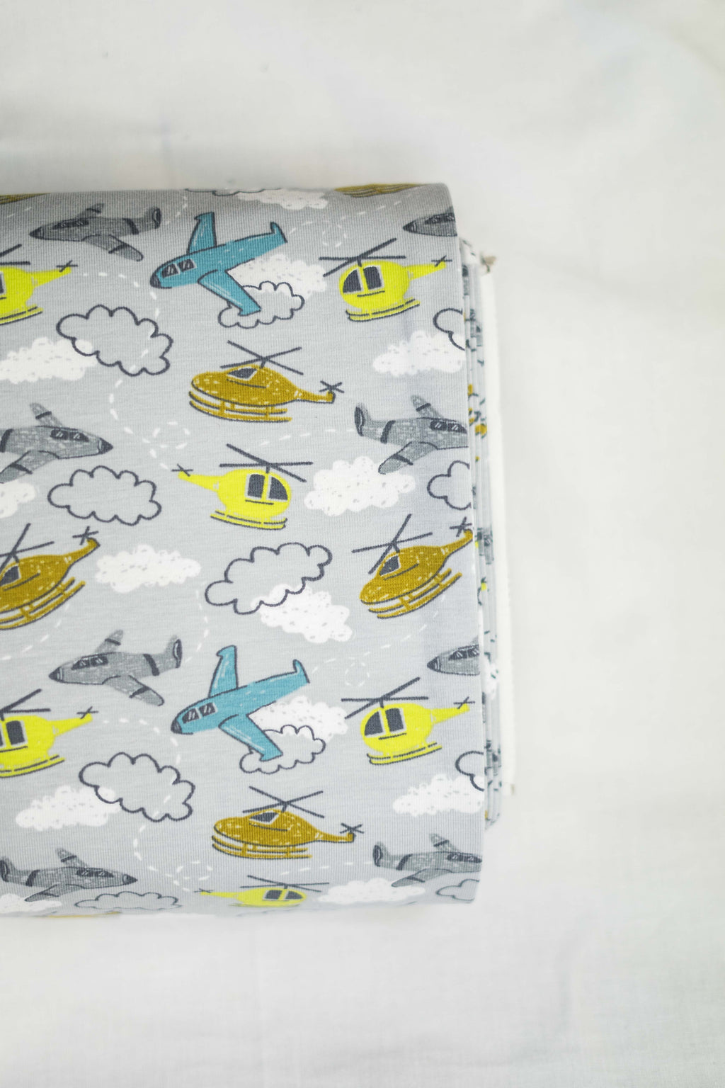 Jersey Elfen und Pferde hellgrau meliert Lillestoff