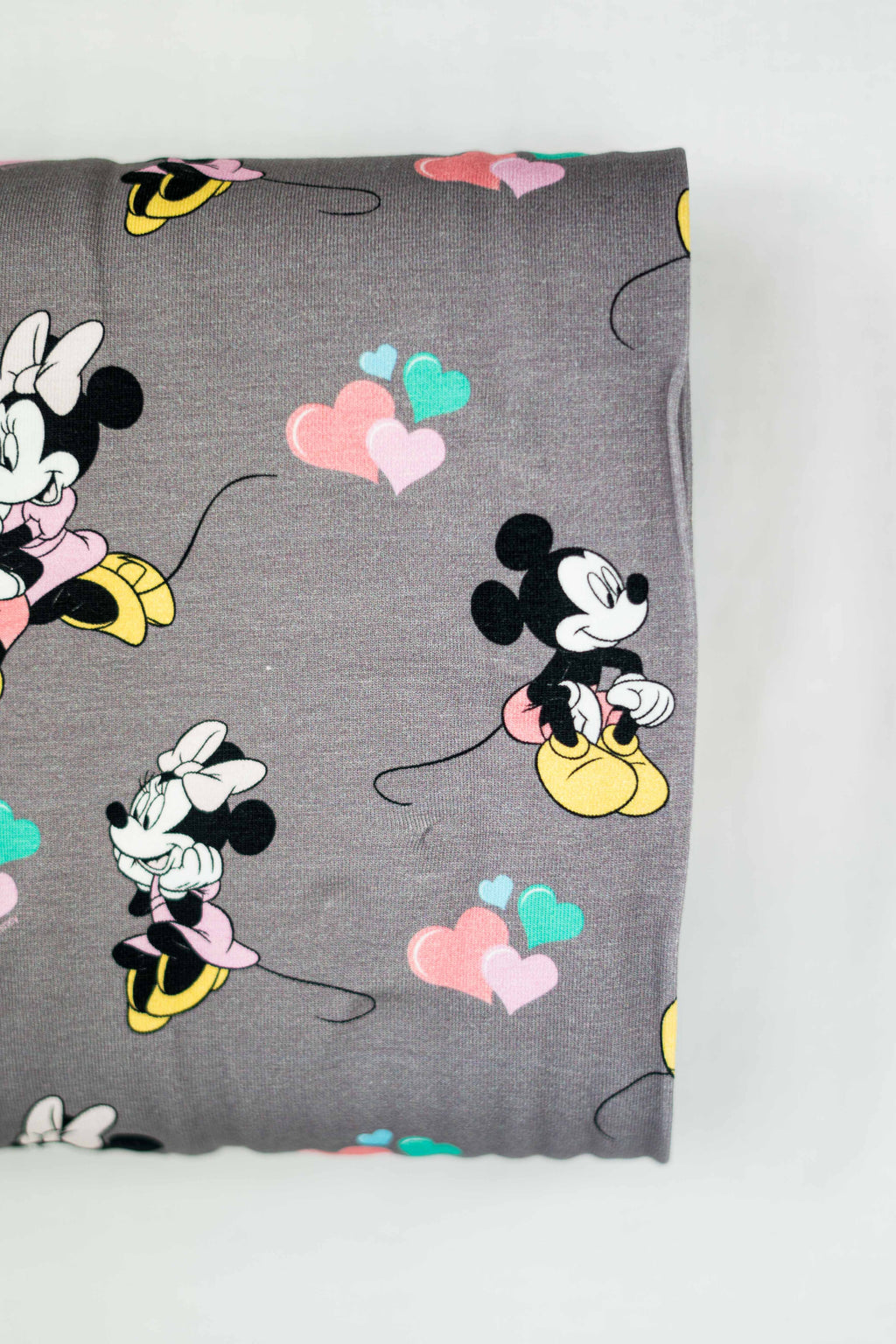 Jersey Mini u. Micky Mouse auf grau Lizenzstoff