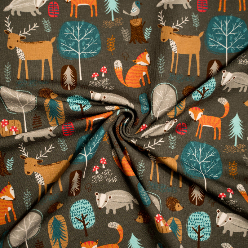 Jersey Waldtiere, Fuchs, Eichhörnchen, Hase auf kräftigem mint