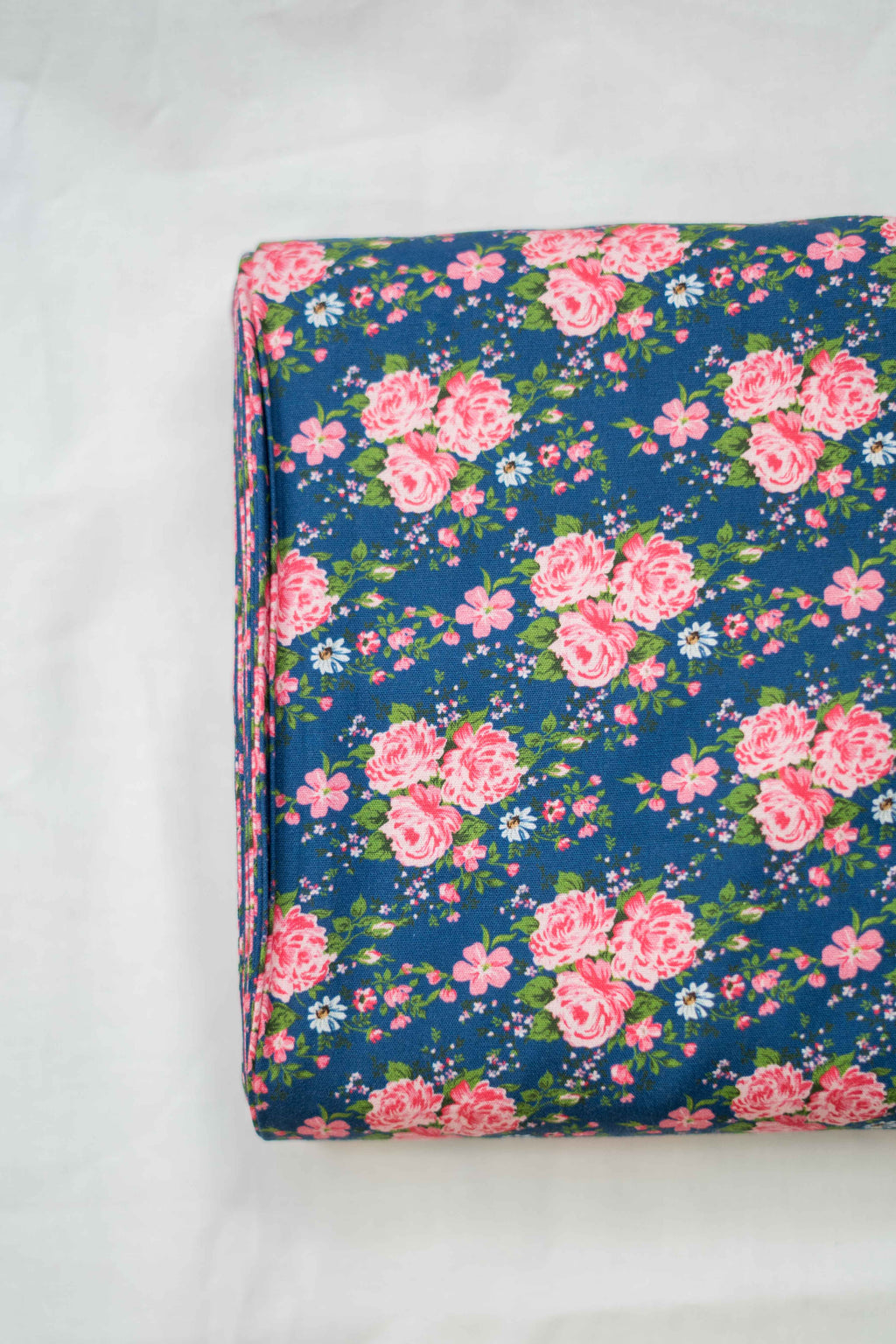 Gütermann "Most Beautiful" Blumenmotiv, Baumwolle, dunkelblau