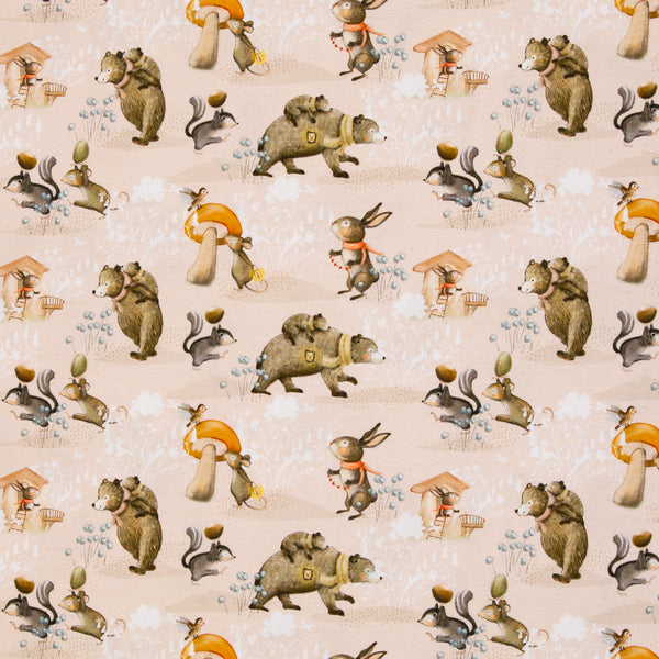 Jersey - Waldleben, Hase, Bär auf lachs/creme 0,5m